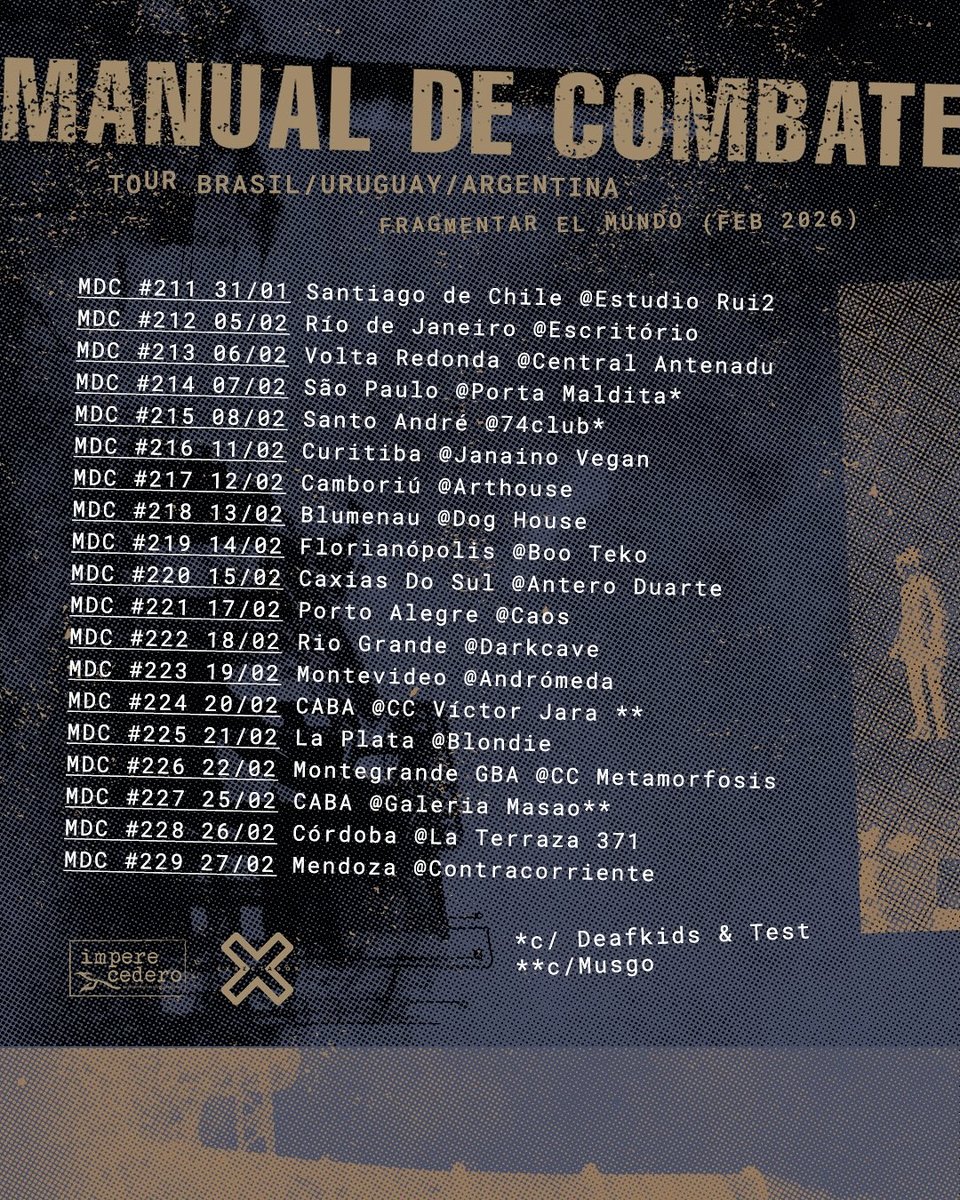 Celebrando 10 anos de banda a Manual de Combate entra numa tunê que vai passar pelo Brasil, Argentina e Uruguai.